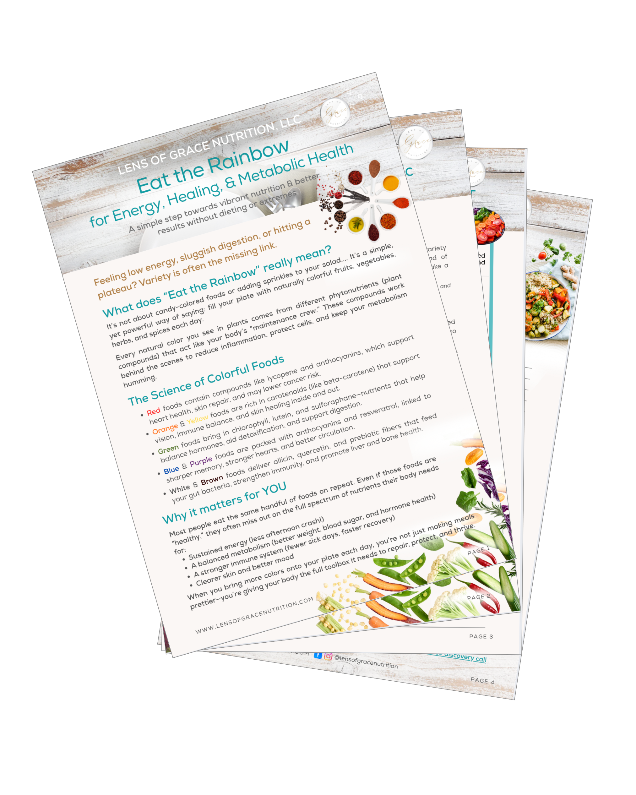 Bring color (and nutrients!) back to your plate with this fun, visual guide to phytonutrients. Learn how each color supports different systems—from immunity to metabolism—and use the checklist to make balanced eating easy and exciting again.
